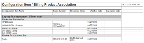 Description Devices with a rule based billing product association, grouped by billing product, then by organization. Includes the effective and expiration date of the association.