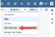 - Click Dashboards in the top navigation bar and under Actions select Manage Tab Groups. The Manage My Tab Groups page will open.