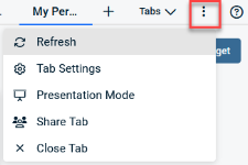 You manage the currently selected tab from the tab menu. Menu options will depend on whether the tab is a personal tab (one you created or copied), or one that was shared with you.