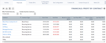 About the Financials: Profit by Contract report