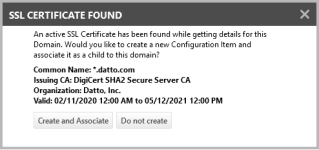 - If an SSL certificate is found for the domain, we will ask if you would like to auto-create a device for the SSL certificate, and associate it as a child to the newly created domain.