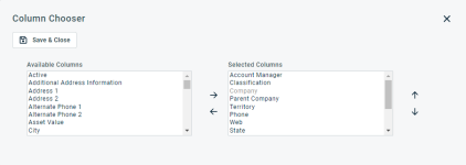 The Column Chooser allows you to customize search results tables throughout Autotask. It determines the following: