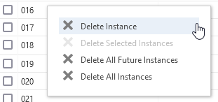 To manage one or multiple instances, optionally select one or more check boxes, then right-click to open the menu. The appropriate options will be enabled.