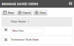 - Click the drop-down button of the Views field and select Save As New View. The Manage Saved Views page will open with a new row inserted, with a default view name of New View.