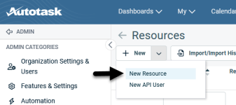 - Resources: Regular resources who will be logging into your Autotask instance. Any employee, consultant, or contractor with your company who will be assigned project tasks, tickets, or sales to-dos, or who is involved in reporting on, approving and posting, or managing these activities must be set up as a regular Autotask resource.