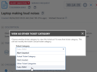 If your security level includes access to other ticket categories, you can view the ticket using a different category's layout without modifying the ticket's actual ticket category. This will give you access to fields that may be hidden on the original category.