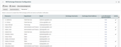 All newly enabled resources are sent a confirmation email with instructions on how to customize the MS Exchange synchronization settings on their Profile page.