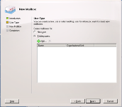- In the right navigation pane, click New Mailbox. The New Mailbox Wizard opens: