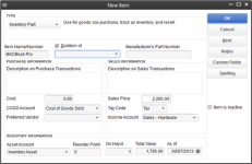 Open the QuickBooks Item List and set up an Inventory Part with a name identical to the product name in Autotask.