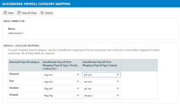 If you would like to transfer Autotask timesheet information to QuickBooks, you must map Autotask payroll categories to their equivalent Wage type Payroll Item Names in QuickBooks. Both hourly and salary payroll types must be mapped.