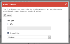 Anchors will not be visible once the article or document is saved. When you click the link, the anchor point is moved to the top of the content window.