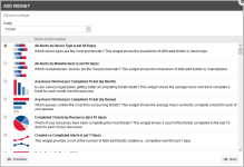 On a dashboard tab, click Add Widget button. The button is grayed out if you have reached the limit of 24 widgets on the tab.