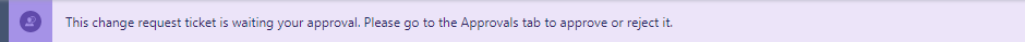 This message is displayed when you are viewing a Change Request ticket that is awaiting your approval. It only appears if the Change Management feature is enabled. Refer to Change management. |