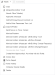 Mark as Incident & Associate with Existing Change Request(s) | This option is only available if the Change Management feature is enabled. Opens the Select Ticket data selector page. Only Change Requests are displayed. Selecting a ticket will add the current ticket as an incident to the selected Change Request ticket. Refer to Change management. |