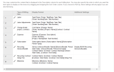 The Description column on the invoice template is not just representing one Autotask data field like the other columns, but multiple fields. You can customize the content that is displayed in this column for each billing item type. You can also specify the order in which you want the item types to display by dragging and dropping rows into the desired sort order.