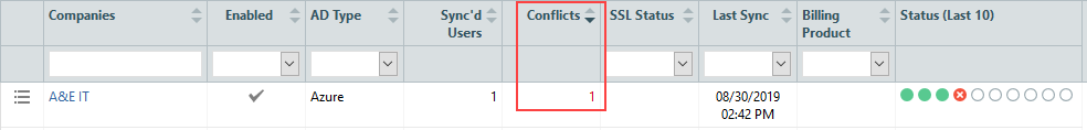 Conflicts | The number of contacts with current mapping conflicts. Mapping conflicts can be resolved on the AD Users tab. Refer to Finding and resolving mapping conflicts. |